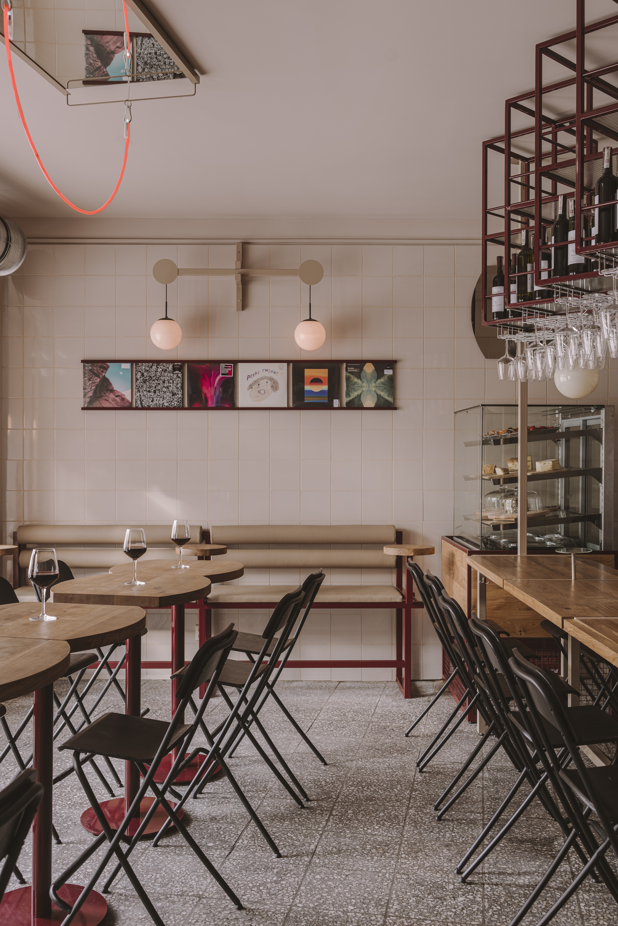 The warm interior of Płynę Wine Bar is filled with author’s furniture and bathed in the colors of red and white wine.